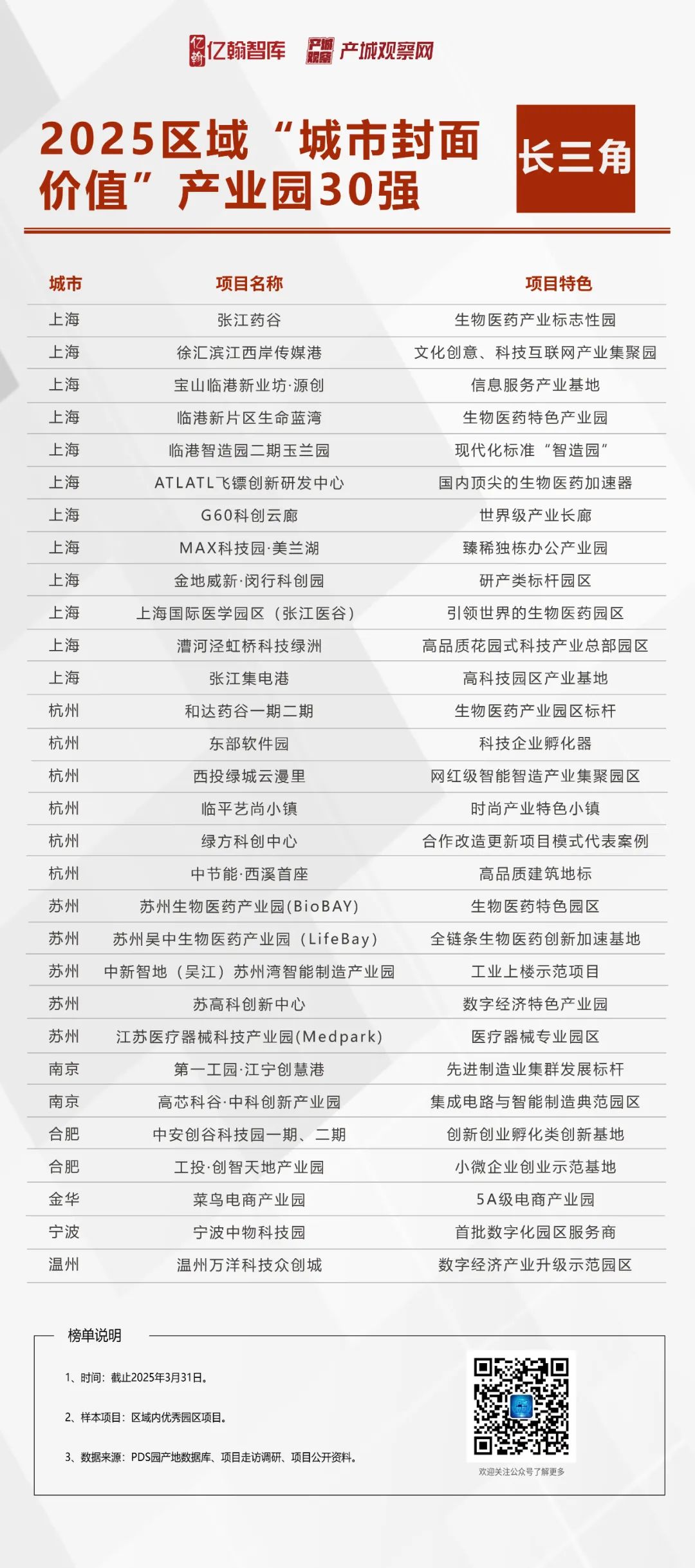 | 2025区域“城市封面价值”产业园30强(长三角) | ||